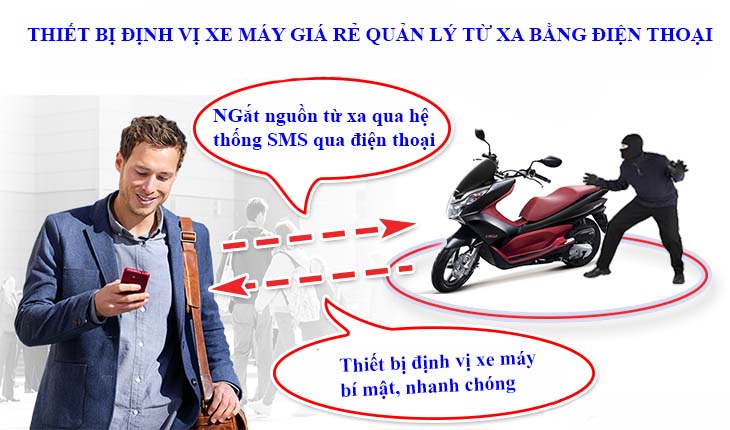 - Ngoài ra, thiết bị định vị xe máy còn có khả năng ngắt nguồn từ xa bằng tin nhắn SMS. Nếu chẳng may, xe của bạn bị trộm hoặc cướp lấy đi mấy, thì với tính năng này bạn có thể thu hồi được xe lại dễ dàng chỉ sau một tin nhắn